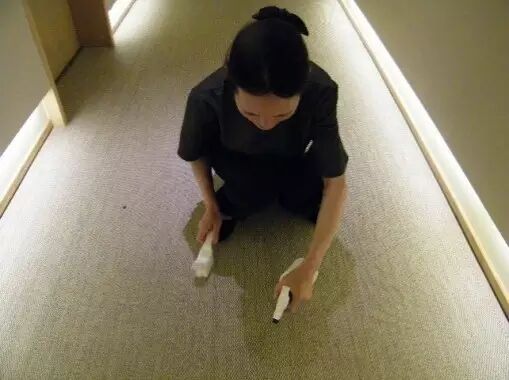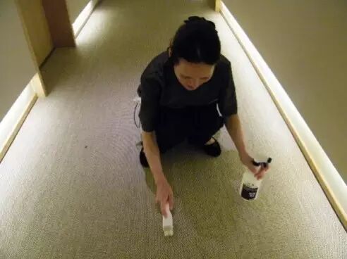 使用噴壺將清水噴灑在地毯表面并使用干凈抹布將液體從地毯內吸除干凈,吹干或自然風(fēng)干。
