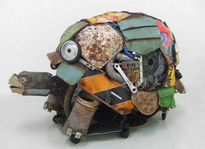 來(lái)自日本的女藝術(shù)家富田菜摘(Natsumi Tomita)她用日常生活中丟棄的塑料餐具、玩具和金屬用具,做出逼真的動(dòng)物形態(tài)雕塑。