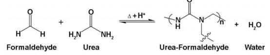 之所以出現這種情況,與甲醛的散發(fā)機理有關(guān)?,F在使用的人造板之所以散發(fā)甲醛,是因為在制造過(guò)程中,添加了脲醛樹(shù)脂或酚醛樹(shù)脂粘結劑。脲醛樹(shù)脂是一種高聚物,它的合成過(guò)程是一個(gè)可逆反應,如下圖所示。溫度升高或者濕度增大都會(huì )促使該反應逆向進(jìn)行,也就是向生成甲醛的方向發(fā)生。此時(shí)材料內部可散發(fā)的甲醛量增加。換句話(huà)說(shuō),這些甲醛并不是一直在家具里,而是逐漸生成的!