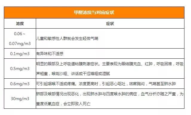 2、甲醛濃度與對應癥狀