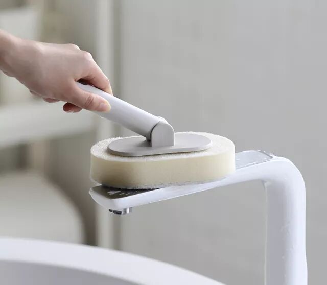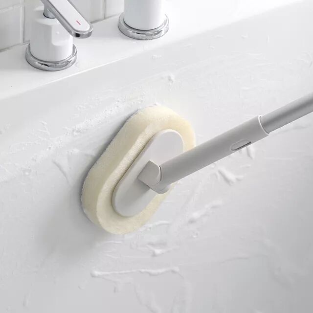 ▲ 浴室長(cháng)柄海綿刷 光滑鋁桿可伸縮,小巧刷頭可旋轉。柔軟去污,不傷瓷體表層。加厚海綿搭配百潔布,魔術(shù)貼粘連,清洗方便??商鎿Q海綿氣孔細膩,材質(zhì)柔軟,替換更新,方便快捷。