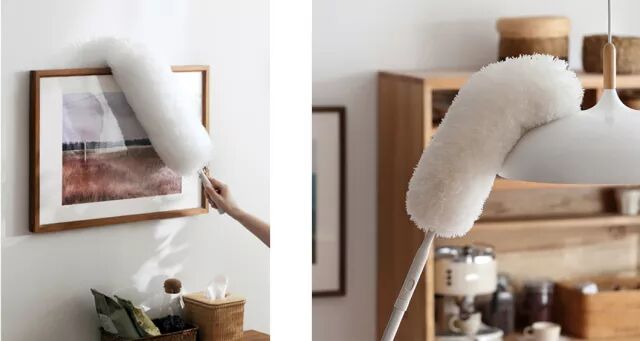 ▲ 超細纖維除塵撣 伸縮自如,無(wú)懼高低空間,輕松除塵,角落縫隙常保潔凈??商鎿Q除塵撣頭,超細纖維,靜電吸附,內置鐵絲,可任意彎曲。