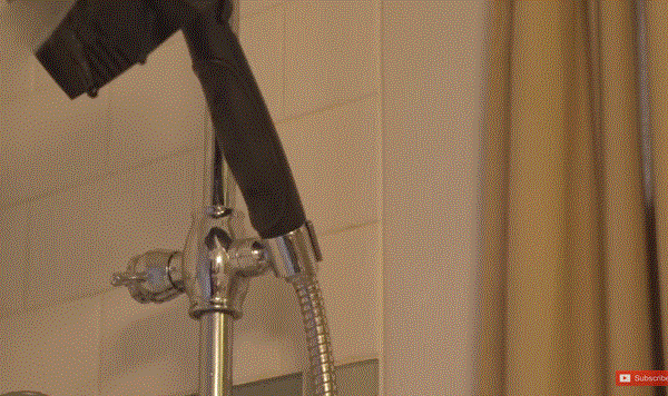 第二步:將橡皮圈套在淋浴噴頭的接口處