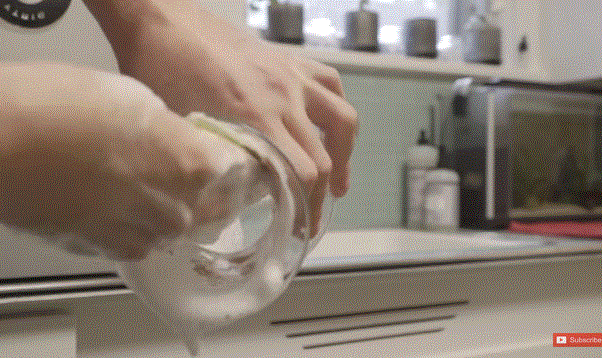 第二步:將裝有白醋和檸檬的碗放入微波爐中,加熱三分鐘再冷卻五分鐘