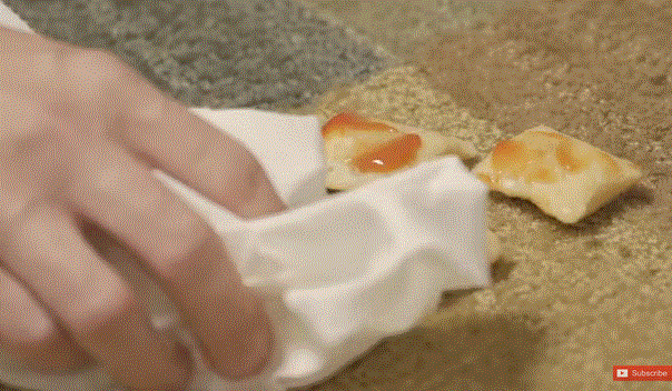 ▼小孩子在家地毯上吃零食時(shí)容易不小心弄到地毯上,油膩膩黏糊糊的怎么辦?