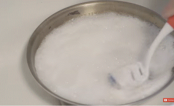 第四步:趁著(zhù)小蘇打起泡,用刷子刷鍋,銹跡全掉啦~